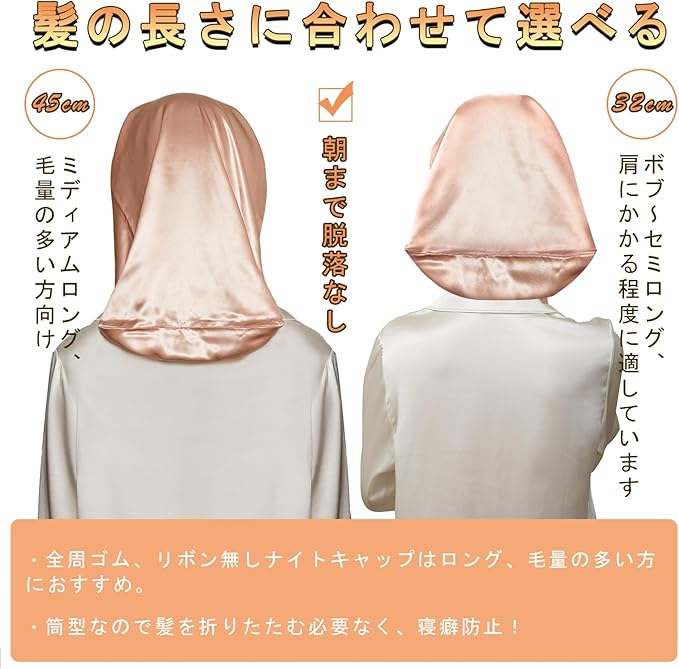 [Utukky] シルクナイトキャップ シルクキャップ 筒型デザイン 朝まで脱落なし シルク100% シルクナイトキャップ ロングヘア用 ヘアキャップ 枝毛・寝癖防止 就寝用 誕生日 プレゼント