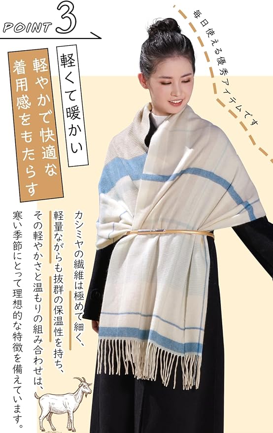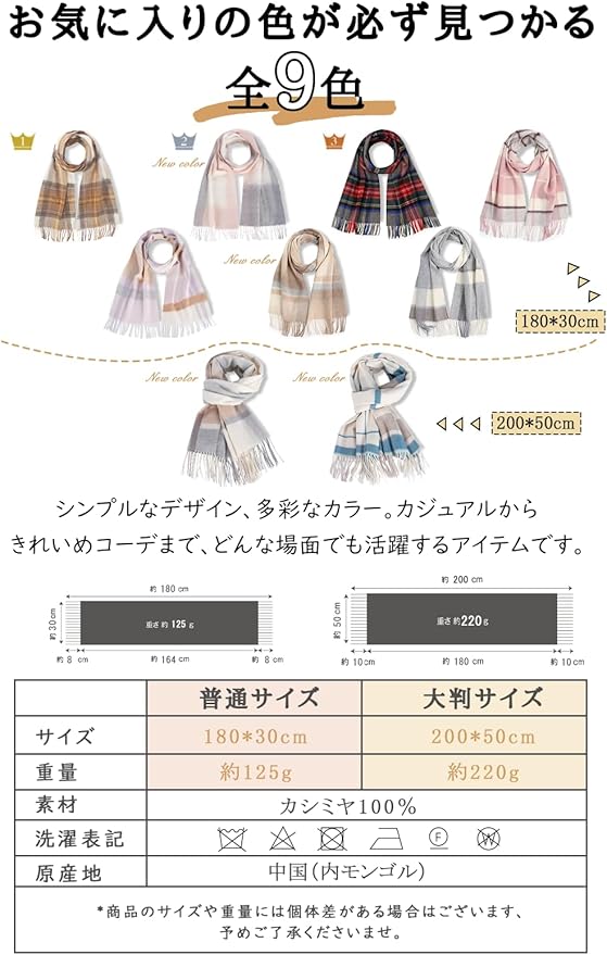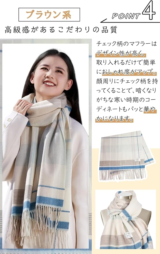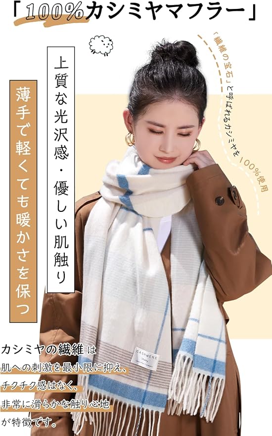 [Utukky] カシミヤマフラー レディース カシミヤ100% チェック柄 カシミヤストール 内モンゴル産高級カシミヤ スカーフ 大判 厚手マフラー 冬 防寒 ふんわり 誕生日 結婚式 クリスマス プレゼント 贈り物 男女兼用