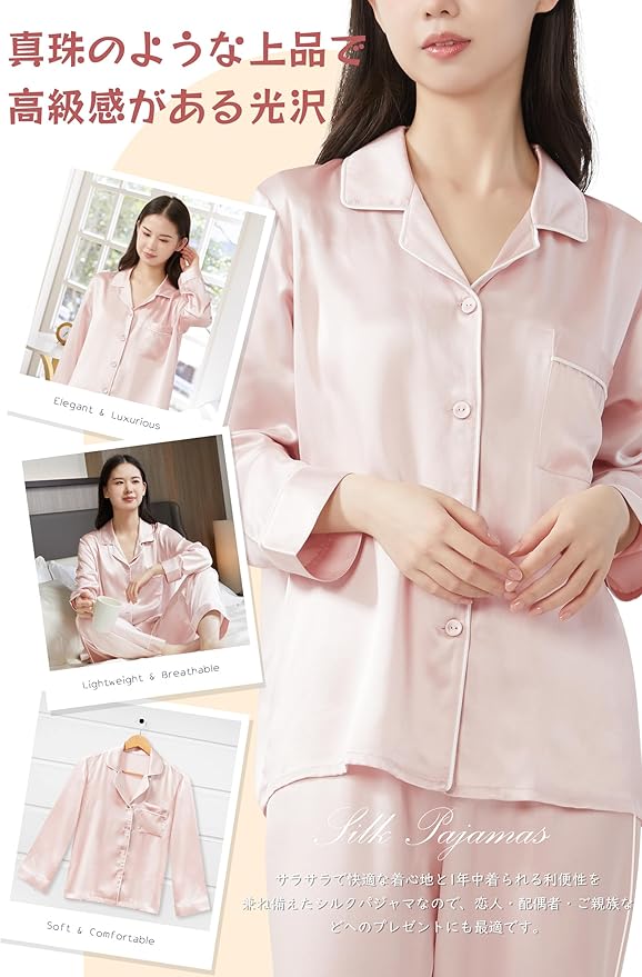 [Utukky] シルクパジャマ レディース シルク100% 6Aランク【2024夏新登場 TVで紹介された限定商品】 冷感 夏用 長袖 長ズボン 上下セット ルームウェア 前開き 静電気防止 吸湿保湿 アレルギー対策 美肌 プレゼント