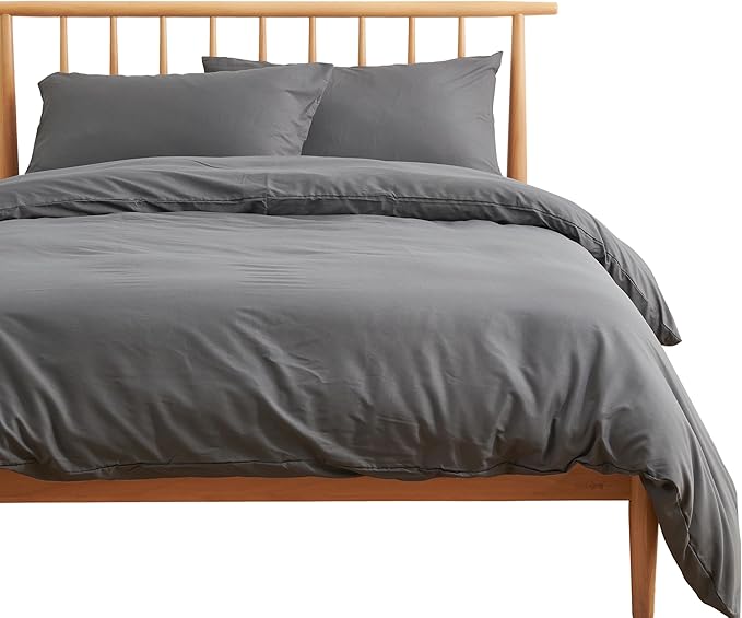 クモリ(Kumori) 寝具カバーセット シングル 3点セット 布団カバーセット 布団カバー シーツ 洋式ベッド・和式布団兼用 掛け布団カバー ボックスシーツ 枕カバー 洗い替え速乾タイプ ピーチスキン加工 ダークグレー