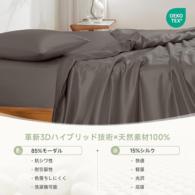 【天然素材100%】革新3Dハイブリッド技術 で85%モーダルと15%シルクを融合したハイブリッド素材です。防ほつれ性に優れ、ピリングやシワができにくく、色落ちしにくい特性を備えています。さらに、 洗濯機可能で、日常使いに便利な耐久性と実用性を兼ね備えています。