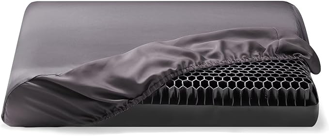 [THXSILK] シルク枕カバー 片面100%シルク 裏面テンセル付き 伸縮式デザイン 最高グレード6A OEKO認証済 洗濯機可 寝癖軽減 美髪・美肌 静電気防止 防ダニ・抗菌 贈り物 33~47*50~67*3~16cm枕 四季適応 一枚(43*63*15cm ダークグレー)