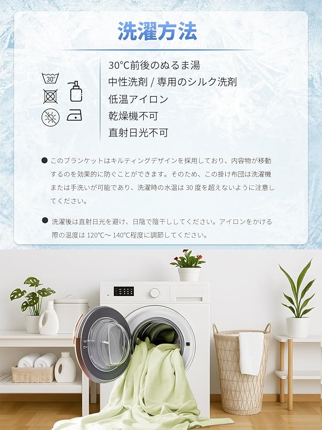 ★洗濯方法:このブランケットはキルティングデザインを採用しており、内容物が移動するのを効果的に防ぐことができます。そのため、この掛け布団は洗濯機または手洗いが可能であり、洗濯時の水温は20度を超えないように注意してください。乾燥機や直射日光不可です。風通しの良い日陰で陰干ししてください。