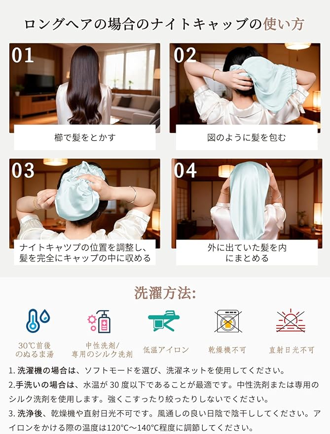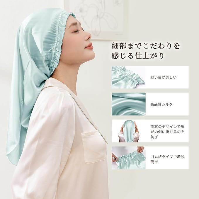 [THXSILK] シルクナイトキャップ 100%シルク 19匁 最高グレード6A OEKO認証 筒状のデザイン ロングヘア ショットヘア 頭皮保湿 静電気防止 切れ毛・枝毛防止 就寝用 産後用 ギフト 一枚 | etshop