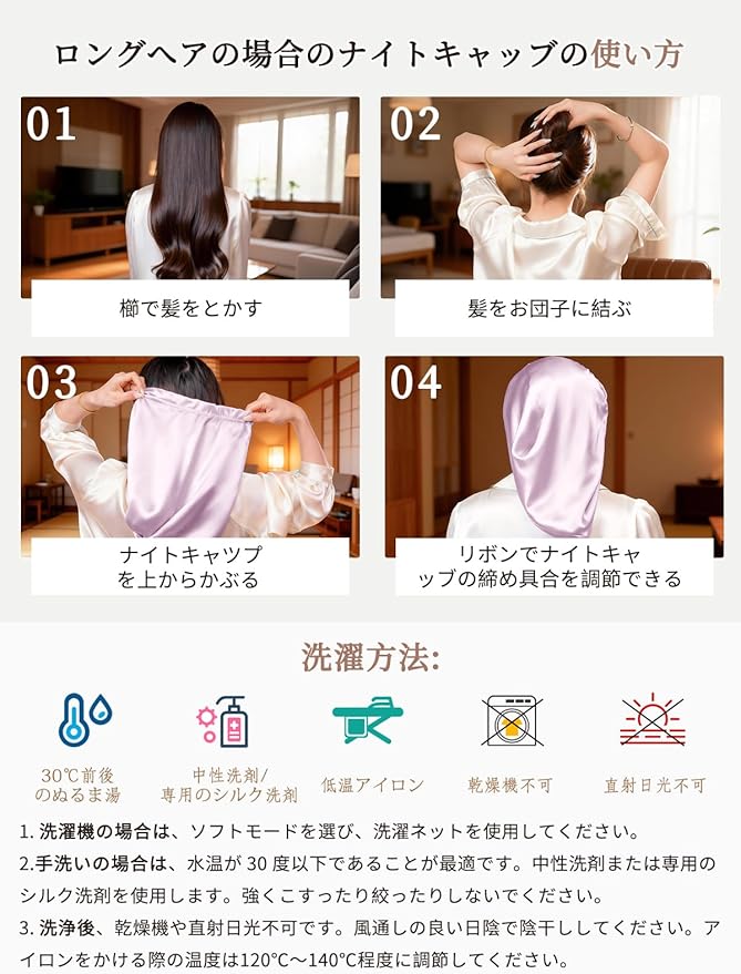 [THXSILK] シルクナイトキャップ 100%シルク 19匁 最高グレード6A OEKO認証 筒状のデザイン ロングヘア ショットヘア 頭皮保湿 静電気防止 切れ毛・枝毛防止 就寝用 産後用 ギフト 一枚 | etshop