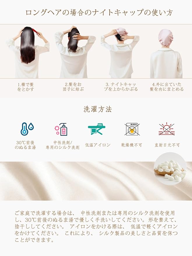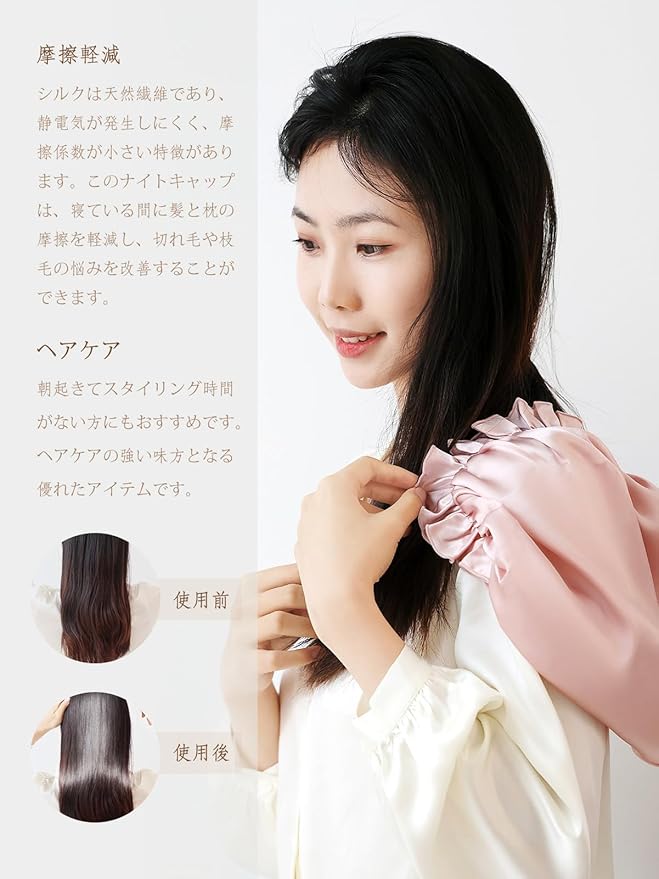 [THXSILK] ナイトキャップ 寝るとき帽子 ヘアキャップ シルク100% 最高グレード6A OEKO認証済 切れ毛・枝毛防止 ツヤ髪 ゴム付き 着脱簡単 ロング&ショットヘア 就寝用 産後用 ギフト 贈り物 一枚 | etshop