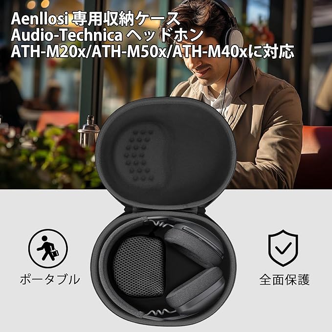 audio-technica ヘッドホン ATH-M20xBT ATH-M30x ATH-M40x ATH-M50x ATH-M60x 対応收納ケース -Aenllosi