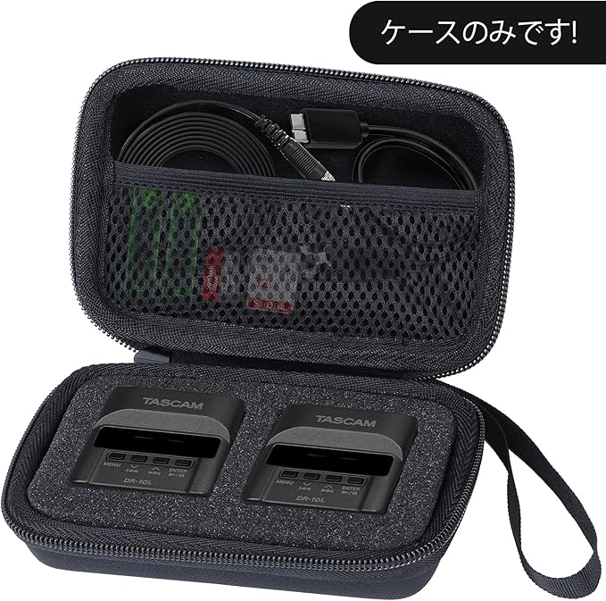 Lebakort収納ケースと互換性のあるTASCAM タスカム DR-10L TASCAM DR-10L Pro ピンマイクレコーダー用に設計されています。バッグ内部の上段には大きな網袋があり、充電ケーブルなどのアクセサリーを収納することができます。下層にはスポンジがついていて、マイクロレコーダーを保護し、沖突や揺れによる損傷を抑えます。