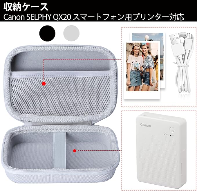 Lebakort収納ケースと互換性のあるCanon スマートフォン用プリンター QX20 (ホワイト ケース)