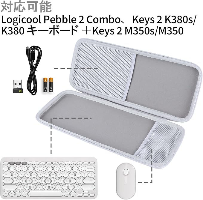 Peyyargo収納ケースと互換性のあるロジクール Logicool PEBBLE KEYS 2 K380s ワイヤレスキーボード ワイヤレス 無線 キーボード 【ホワイト ケースのみ】