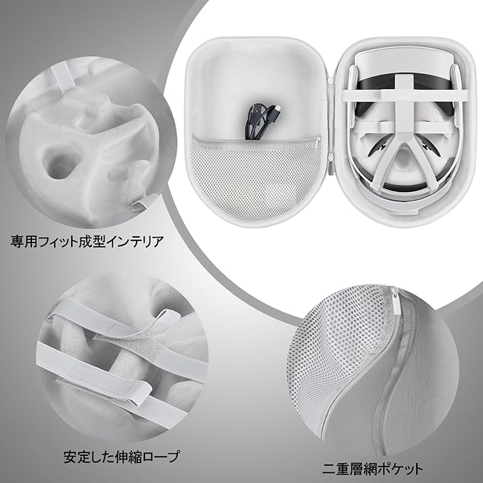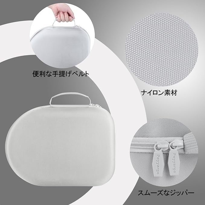 Peyyargo の Meta Quest 3S及び Meta Quest 3 コントローラー付きのオールインワンVR・MRヘッドセットに対応する収納ケースは、整理を明確に簡便化します。内部上層にはさらにジッパー付きのネットポケットが設けられ、USB 接続ケーブルを収納できます。下層スペースはMeta Quest 3S及び3 オールインワン VR・MR ヘッドセットを収納するために専門に設計され、溝とゴムバンド 2 本を備えていることで、機器の散乱を防ぎます。内部に柔らかいベロア裏地を採用しているため、同収納ケースはMeta Quest 3S コントローラー付きオールインワン VR・MR ヘッドセット及びその他物品の表面を傷から効果的に保護できます。全体サイズがコンパクトで、スーツケースやバッグに収納しても過度にスペースを占めず、日常携帯に負担をかけません。