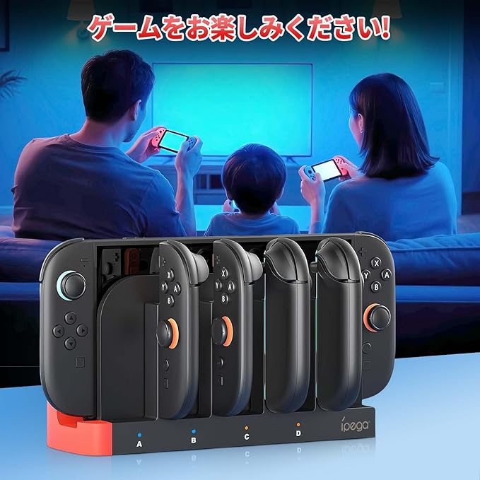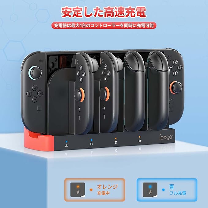 Switch 2 ジョイコン用 充電スタンド Tomistan Joy Con用 コントローラー磁吸充 電 対応 4台同時充 電可能 ジョイコン用 右/左 急速充 電器 LED充 電指示ランプ付き (TM10E)