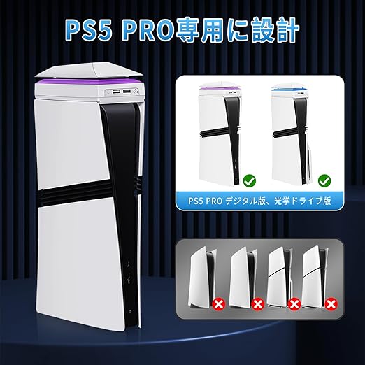 PS5 Pro用冷却ファン 【2025新登場-上部放熱&防塵】プレステ5 pro 用アクセサリー ps5 pro カバー上部放熱 防塵 RGBカラフルな照明モード&USBポート付 ps5プロ用上部放熱 雰囲気作り ps5 本体pro 周辺機器用 ディスク/デジタル版の両対応