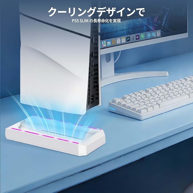 【放熱改善】縦型ベーススタンドはPS5 slimコンソールから発生する熱をより効果的に放熱します、空気循環を促進することで。高品質のABSは放熱性に優れ、ゲーム機の放熱機能を最適化し、長時間のゲーム中に最高のパフォーマンスを発揮し、ゲーム機の寿命を延ばすパフォーマンスエンハンサーでもあります。