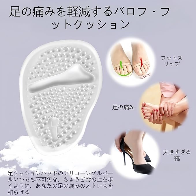 【快適なサポート】:中足骨パッドは高品質のソフトゲルで作られています。 ハイヒールを履いての仕事、ダンス、ショッピングなど、この中足骨パッドは優れたクッション性と衝撃吸収性を提供し、足の痛みを和らげます。