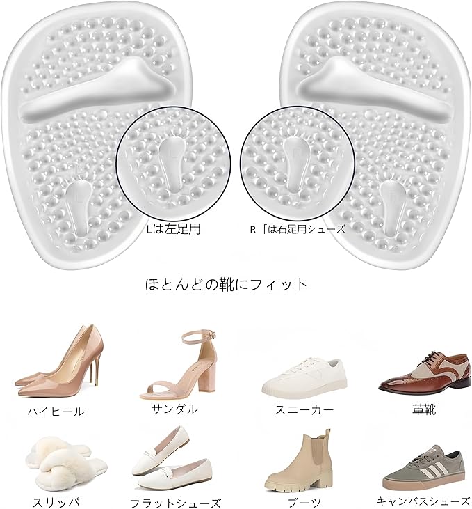 【商品仕様】:当社の女性用ハイヒールフットベッドは、すべての靴のサイズにフィットする、左右が分かりやすいデザインが特徴です。 当社のヒールクッションは、あなたの靴のスペースを取ることはありませんし、あなたの靴のための十分なスペースがあることを確認してください。