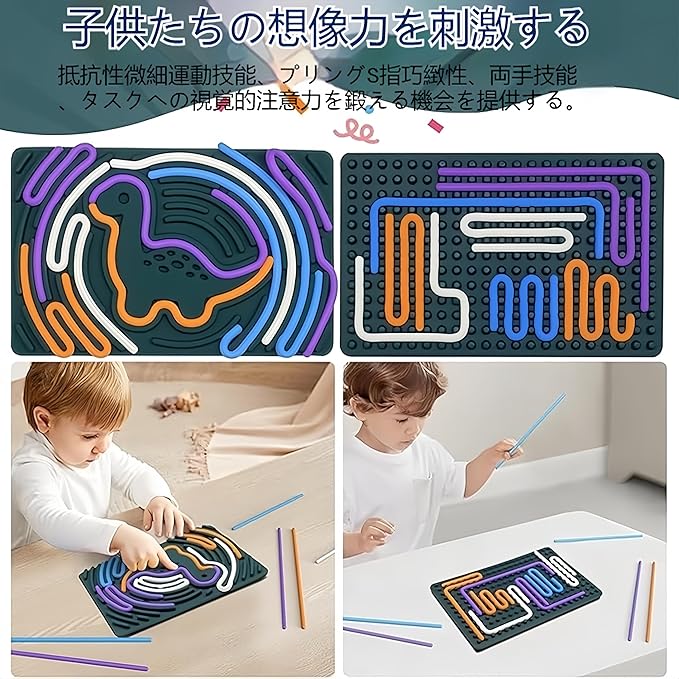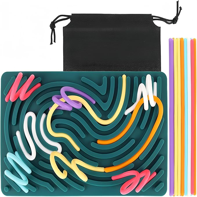 安全で持ち運びに便利なおもちゃ - 高品質で無害なシリコンを使用したこのおもちゃは、複雑なシリコーンボード、20本の色鮮やかなひも、そしてどこでも遊べる便利なキャリーバッグが特徴です。 ギフトに最適です。