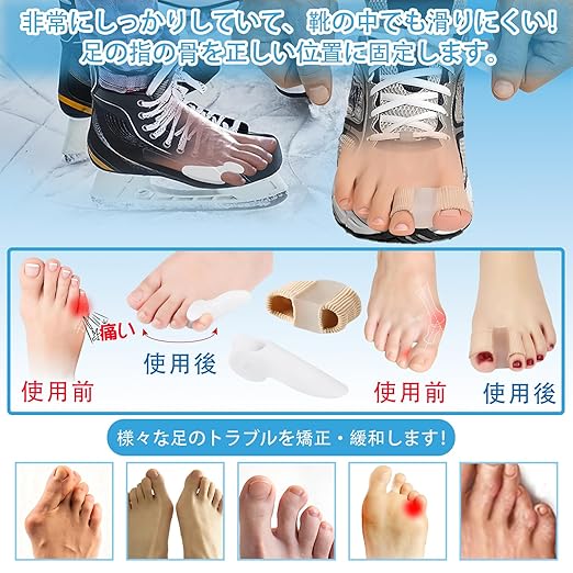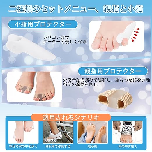 小趾サポーター, 足指サポート,足指サポーター お 睡眠足指ストレッチパッド、二種類の異なるタイプ足指サポーター, 足指ストレッチパッド、ユニセックスで着脱が容易 2種類(4個入) (L+小趾サポーター)