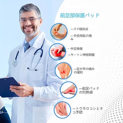 【商品設計】:前足部のパッドは足の裏にフィットして保護し、長時間の立ち仕事、運動、ダンスなどの激しい運動による痛みを和らげます。 非常に柔らかく、肌に優しく、効果的に衝撃を吸収し、快適な歩行のための痛みを軽減します。