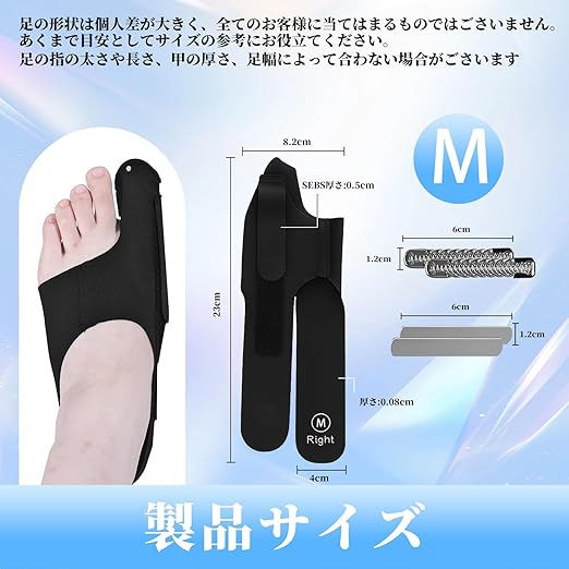 拇指サポーター 外反対策 母趾調整グッズ 足指サポーター 抗菌防臭・固定式 足指を広げる お手入れ簡単 洗える (側面は取り外し可能で、2本のアルミストリップと2本のスプリングストリップで調節可能) (M:22-25)