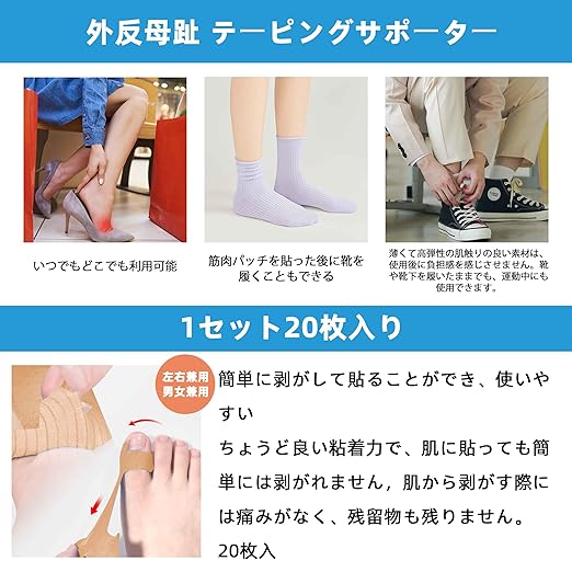 [20枚組] IEADEN 外反母趾 テーピングサポーター 新年 お年玉袋 親指 足指サポーター 薄型 外反母趾サポーター テーピングテープ 固定 伸縮 サポーター外反母趾 洗濯可能 角度とサイズ調整可 日常使用に適し バレエや剣道などにも最適 男女兼用 左右の足用 肌色