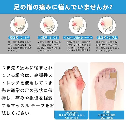 【強力なサポートと安定性】: 伸縮性のあるストラップが外反母趾を強力にサポートし安定させ、外反母趾の筋組織を保護します.ポーツ中の足指の捻挫や関節の怪我を防ぎ、外反母趾や足指の痛みを軽減します.
