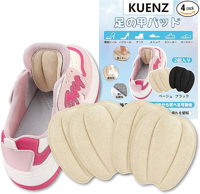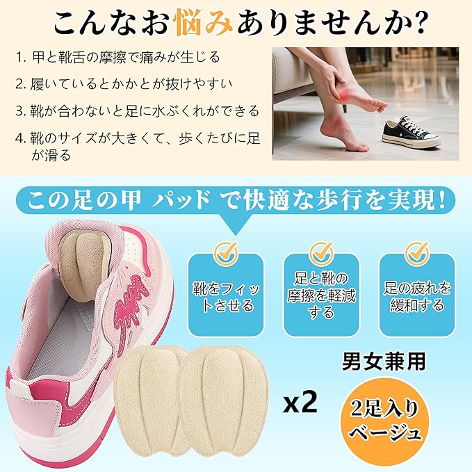 タンパッド,靴 サイズ調整 足の甲 パッド,ローファー・革靴・ハイヒール・ブーツ・スニーカーに対応,甲・かかと・足の裏に使用可,2 足セット
