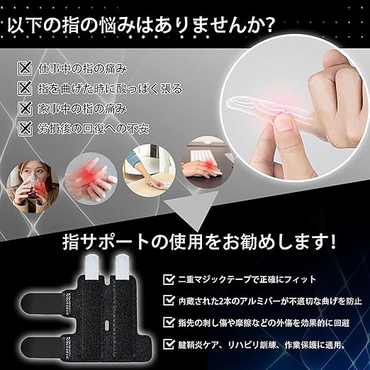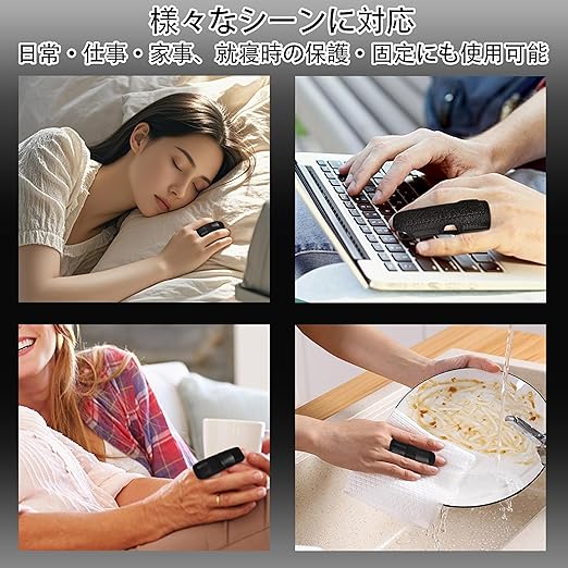 【様々なシーンで活躍】:指サポーターの外観は黒色デザインを採用しています。身につけても目立たずスタイリッシュ。日常生活で気兼ねなく使用でき、仕事、勉強、スポーツ、家事など様々な場面に適しています。