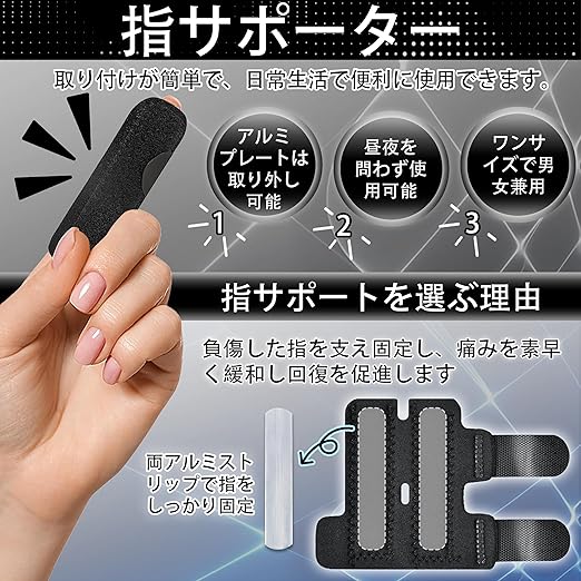 【独自のダブルアルミバー設計、優れたサポート効果】:一般的な指サポーターと比較して、当社の指サポーターは独自のダブルアルミバー設計を採用し、指をしっかり支え、効果的に保護します。装着時の脱落しにくさを実現しています。