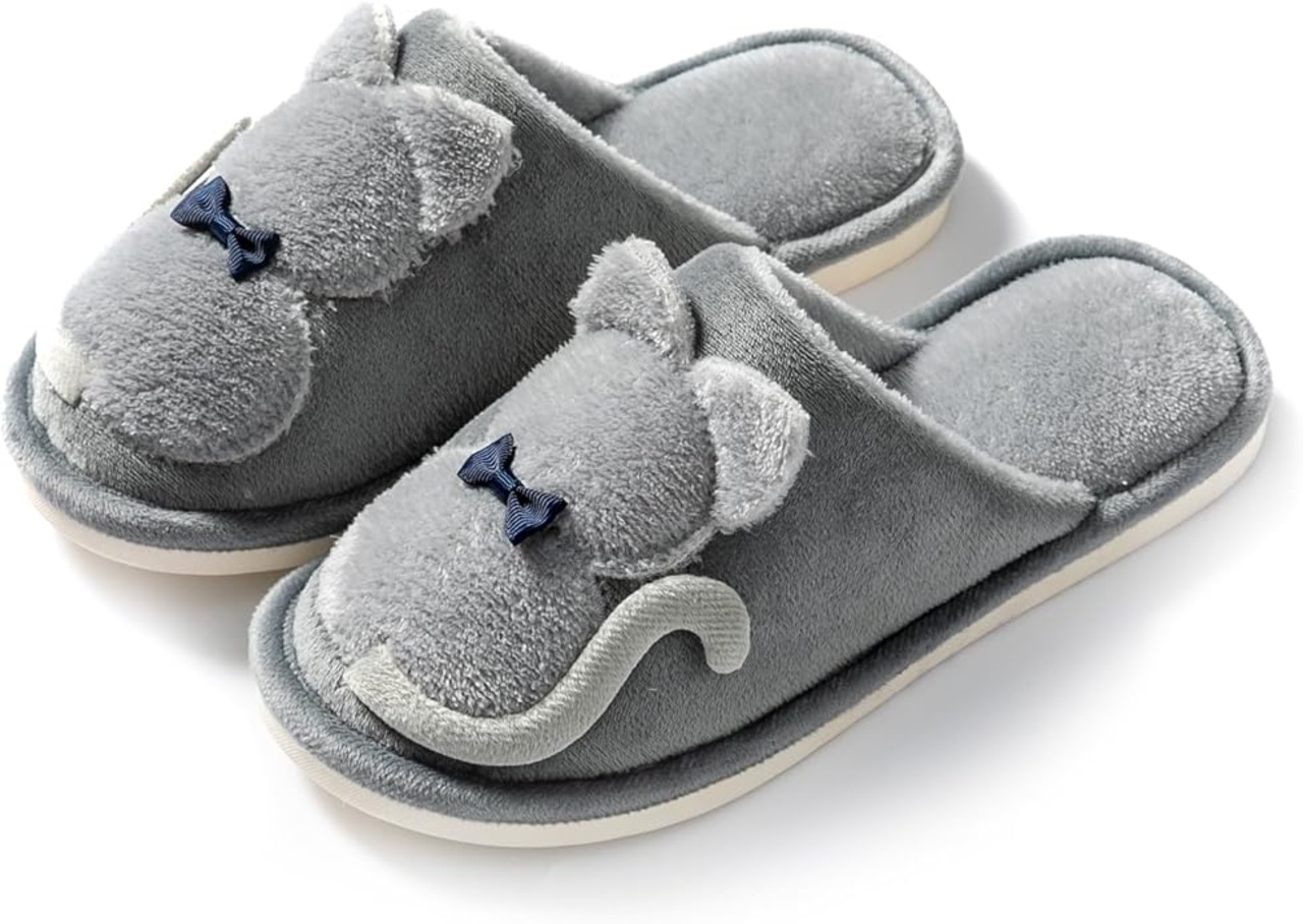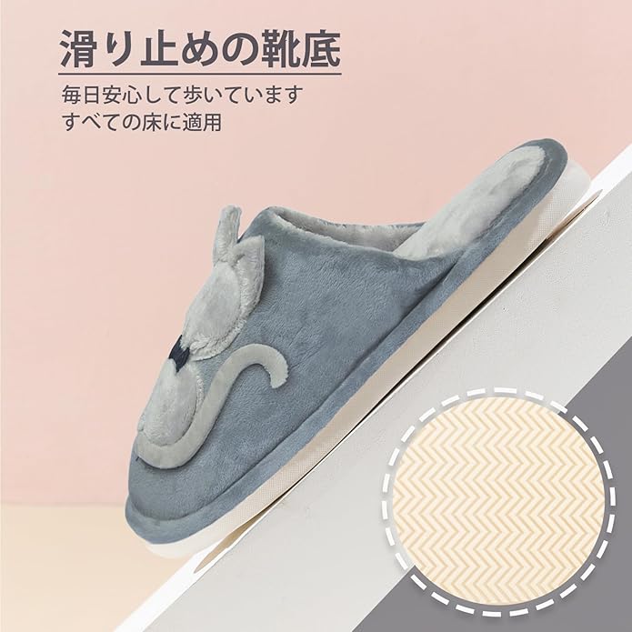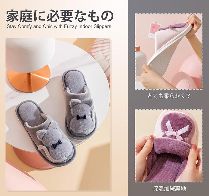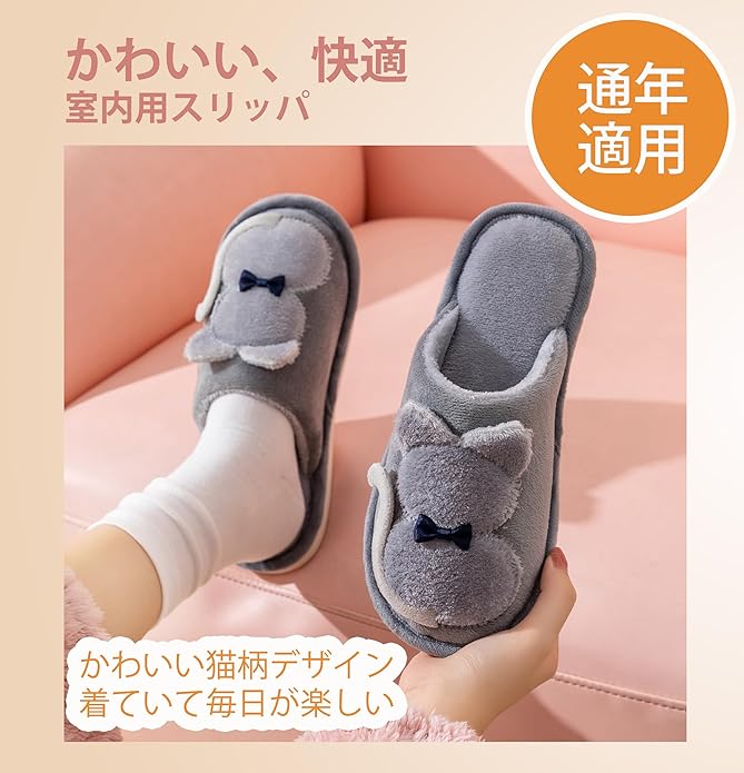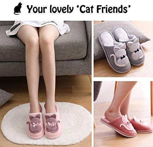 [Onmygogo] 大人のためのファジーぬいぐるみ猫のスリッパ 女性のための冬の室内スリッパ 暖かい 快適 ノンスリップ