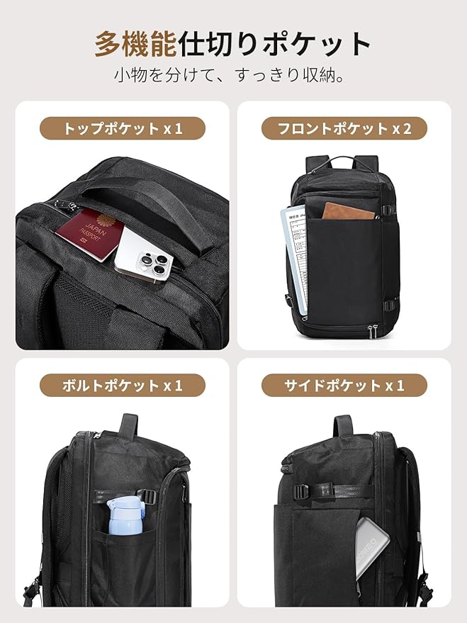 [Samfolk] リュック 大容量 40L 旅行 リュック メンズ バックパック 機内持ち込み 旅行バッグ リュックサック ビジネスリュック 防水 多機能 17.5インチPC対応 通学 通勤 トラベル 出張 3WAY