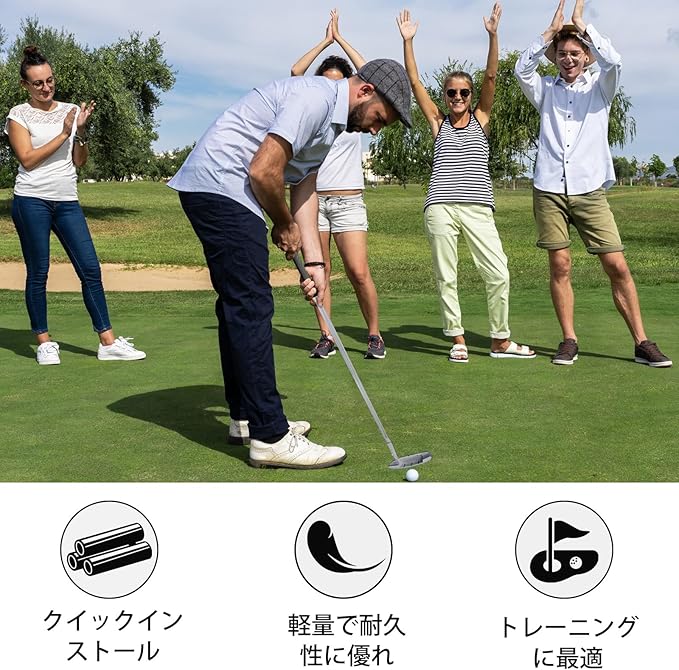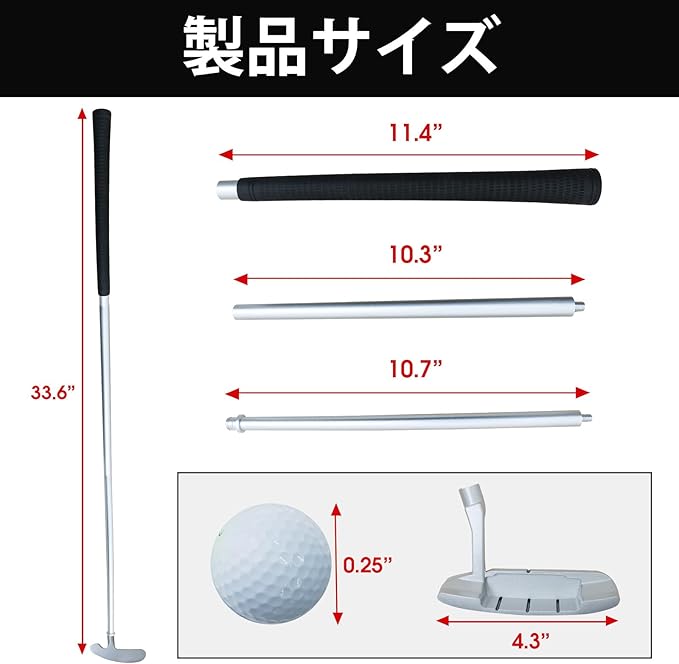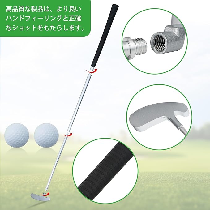 ゴルフクラブセット:このゴルフプッターは4つのパーツに分解可能で、2個のゴルフボールもプレゼントとして付属しています。携帯性に優れ、旅行やアウトドアでのミニゴルフ用プッターとしてもご利用いただけます。