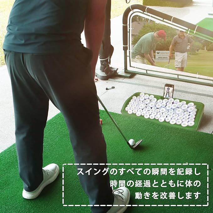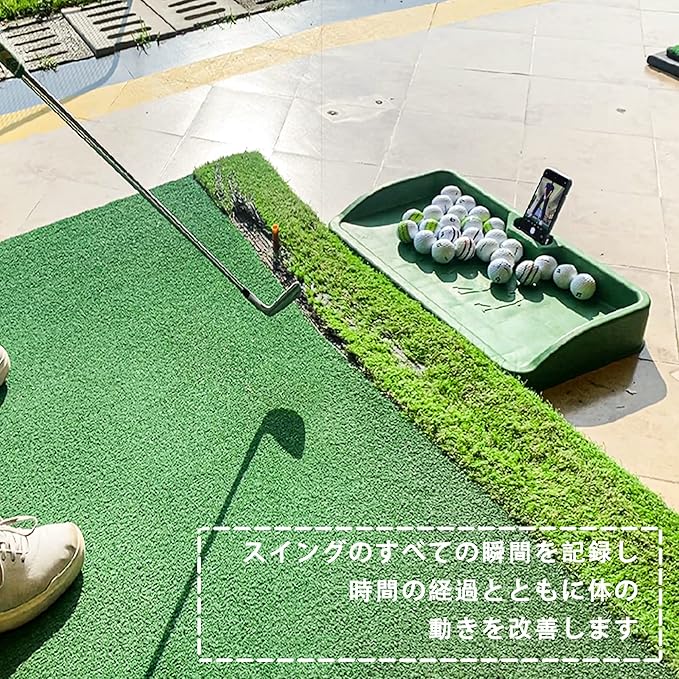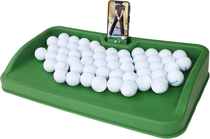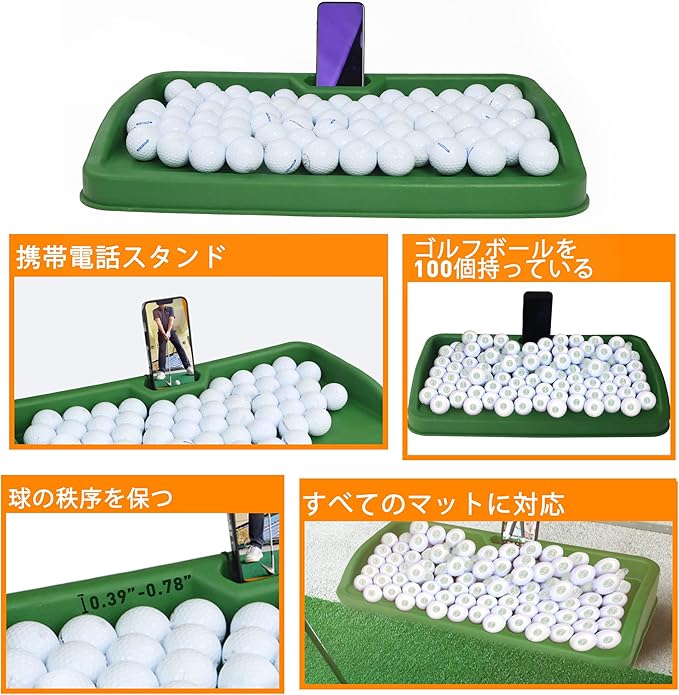 ゴルフボールトレイ- 携帯電話ホルダーレコードゴルフスイング、八十ボール容量、重いゴム製ゴルフ皿はすべての打球パッドと互換性がある
