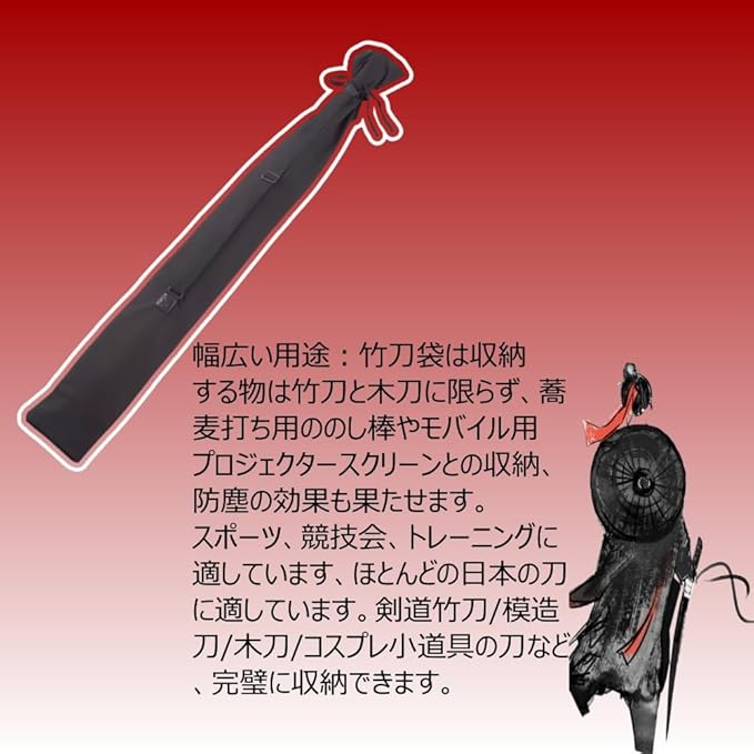 幅広い用途:竹刀袋は収納する物は竹刀と木刀に限らず、蕎麦打ち用ののし棒やモバイル用プロジェクタースクリーンとの収納、防塵の効果も果たせます。スポーツ、競技会、トレーニングに適しています、ほとんどの日本の刀に適しています。剣道竹刀/模造刀/木刀/コスプレ小道具の刀など、完璧に収納できます。