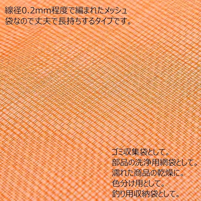 線径0.2mm程度で編まれたメッシュ袋なので丈夫で長持ちするタイプです。 ゴミ収集袋として。 部品の洗浄用網袋として。 濡れた商品の乾燥に。 色分け用として