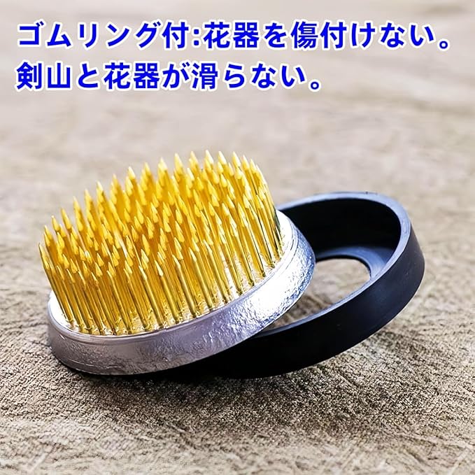 剣山 丸形 丸剣山 華道 生け花 フラワーアレンジメント ゴムリング付き 花留 傷付けない 真鍮/ゴールド (小丸)
