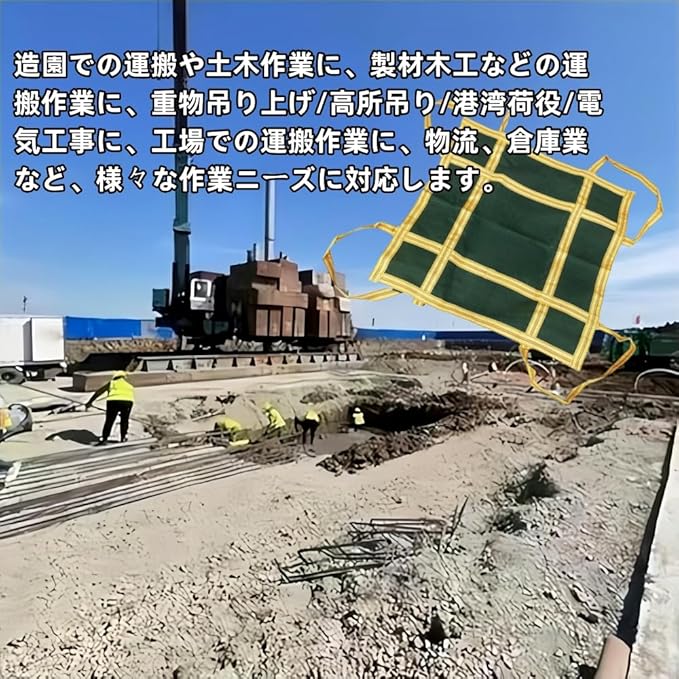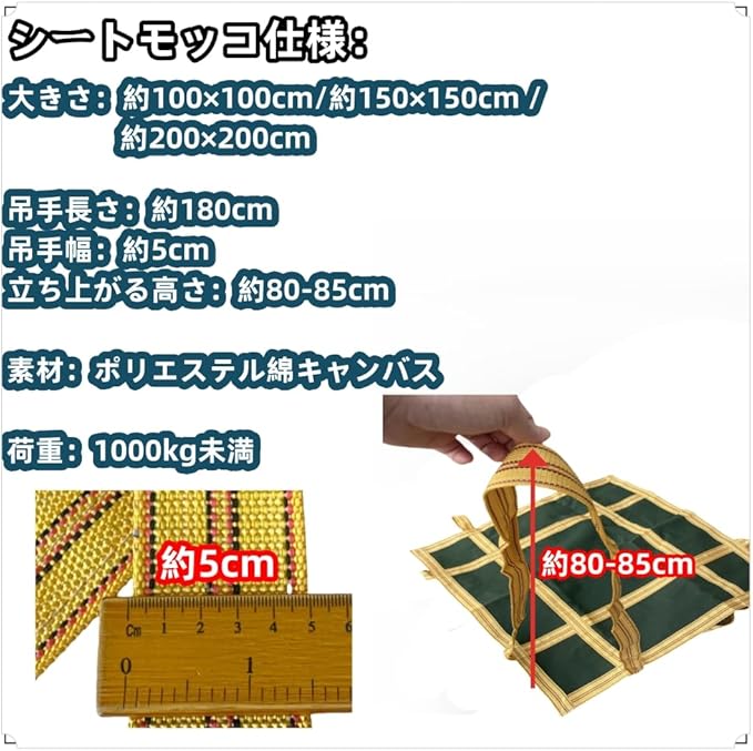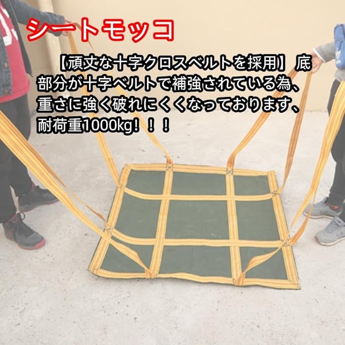 シートモッコ 強靭 頑丈 布モッコ 吊り耐荷重1t平面 造園 工場 農作業 土木作業などの運搬作業に モッコ イージーモッコ 再利用も可能です (100 100cm)