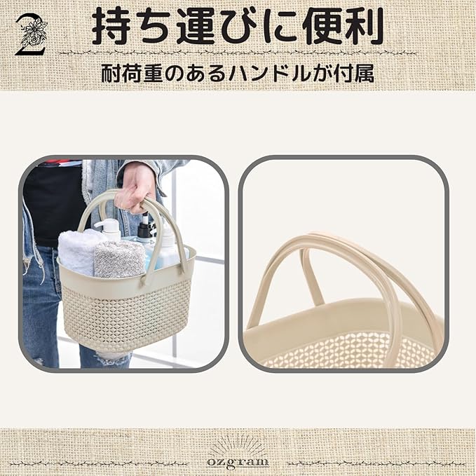 シングルカラー 【モカ】 ランドリーバスケット シャワー スパバッグ 洗面用具 手提げ 銭湯 バスルーム 風呂かご 温泉バッグ お風呂 温泉ポーチ 化粧品入れ