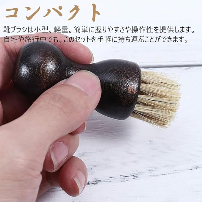 【コンパクト】靴ブラシは小型、軽量。簡単に握りやすさや操作性を提供します。自宅や旅行中でも、このセットを手軽に持ち運ぶことができます。