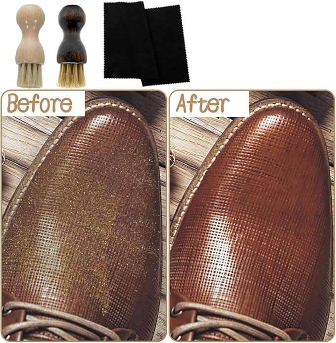 【セット内容】靴クリーム塗布用ブラシ、2個入り。製品には、靴のクリーニングや革靴の研磨に使用できるクリーニングクロスが含まれています。