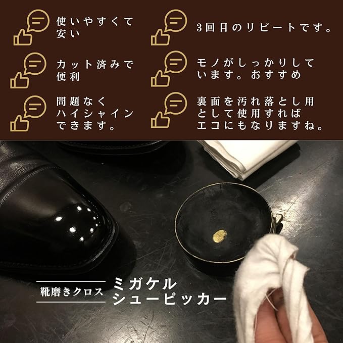 10枚入り、革靴仕上げ磨き専用布 ミガケル シューピッカー 面倒な裁断作業はもういりません。