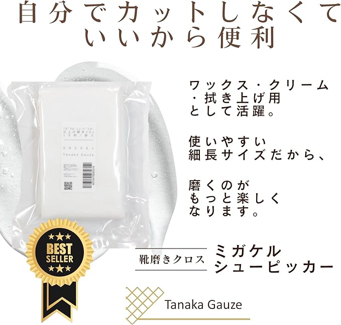 [タナカガーゼ] 10枚セット 革靴 磨き クロス ミガケル シューピッカー ハイシャイン仕上げ 専用クロス 柔らかい 靴磨き 布