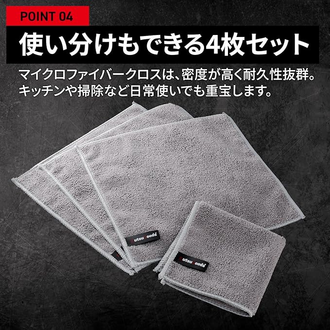 【商品仕様】 【セット内容】:マイクロファイバークロス 4枚 【サイズ】:25cm 25cm 【素材】:高密度マイクロファイバー 【カラー】:グレー 【お手入れ】:洗濯機で洗えて、乾燥も速い