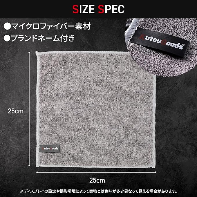 【KutsuGoods】靴用マイクロファイバークロス 4枚セット 【スニーカーケアの必需品】高吸水・速乾で汚れをしっかり拭き取る スニーカーや革靴のお手入れに最適な【高密度マイクロファイバークロス】。 洗剤や水分をしっかり吸収し、拭き残しを防ぎながら靴の表面を優しくケア。 シューケアはもちろん、家庭や車の掃除にも使える【万能クロス】です。