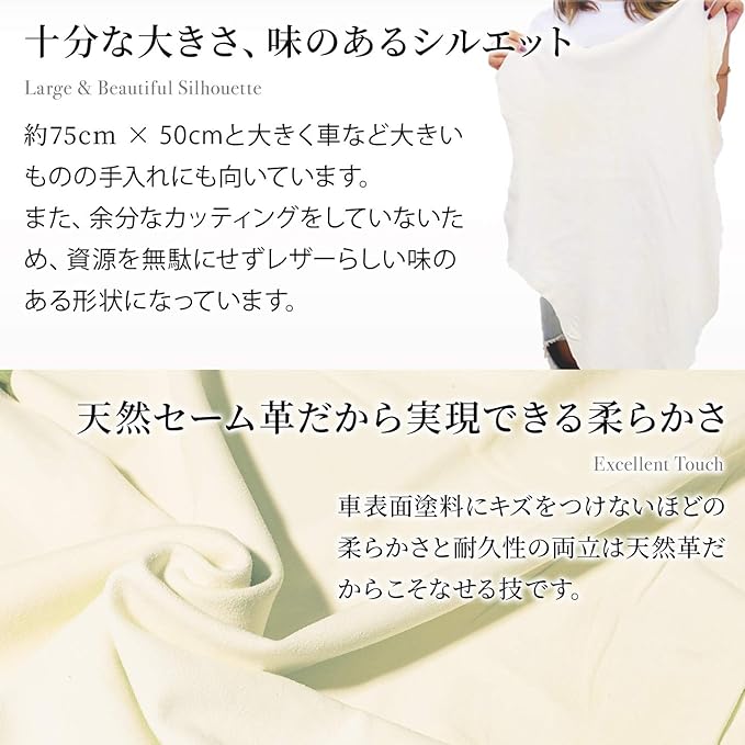 ADi 天然 セーム革 【大切な品のお手入れに】(約75 50cm)自然形 大判 Lサイズ クリーニングクロス 洗車