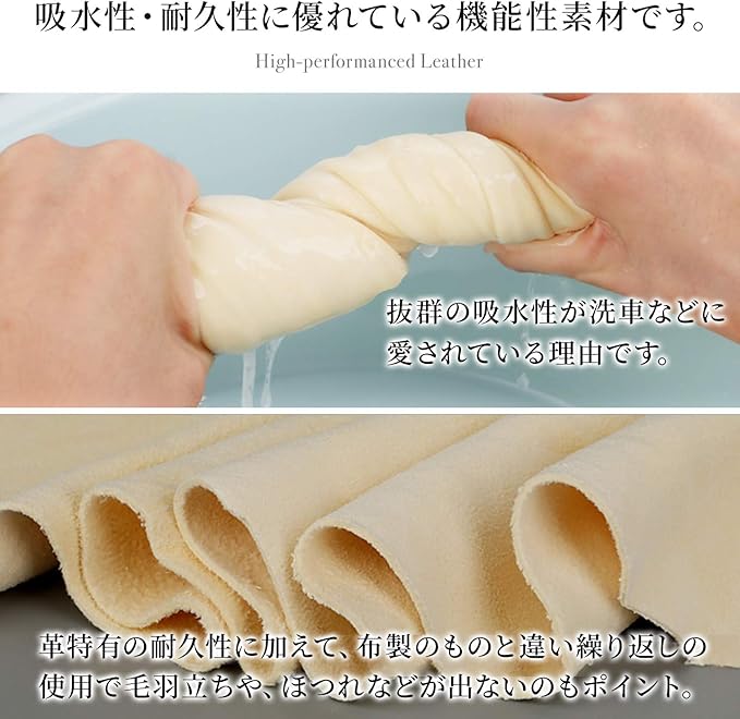 ✅ 毛皮をスエード状になめしたセーム革は柔らかく、細かな傷が付きにくい素材です。 上質な天然セームを使用した本製品は非常に柔らかく、吸水性と耐久性に優れています。