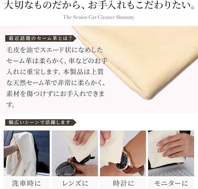 ✅ 愛車やカメラ、楽器や腕時計、ジュエリーなどデリケートな商品を傷つけずにお手入れしたい方に天然セーム革がオススメです。