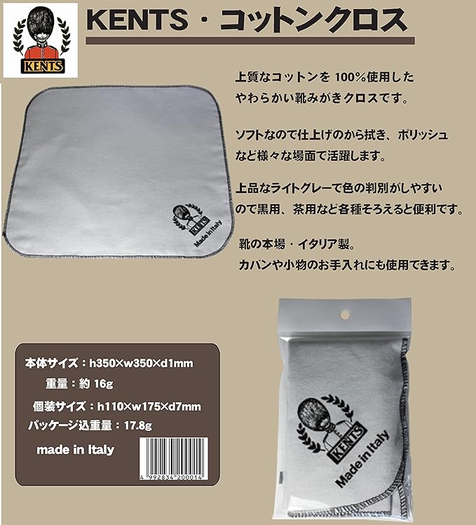 KENT 靴磨き クロス 布 ネル生地 起毛質 クリーム馴染み良い イタリア製 大判35 35cm (革靴 光沢 仕上げ 汚れ落とし に) 大