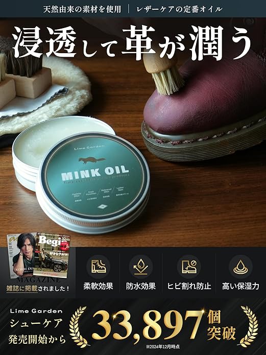 [ライムガーデン] 【大容量100g】 ミンクオイル 革用 革靴 革ジャン 財布 カバン レザー ケア 革製品 手入れ 【高い保湿力x防水性の向上x柔軟効果x無色透明xヒビ割れ防止】