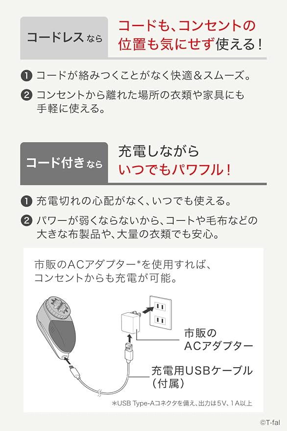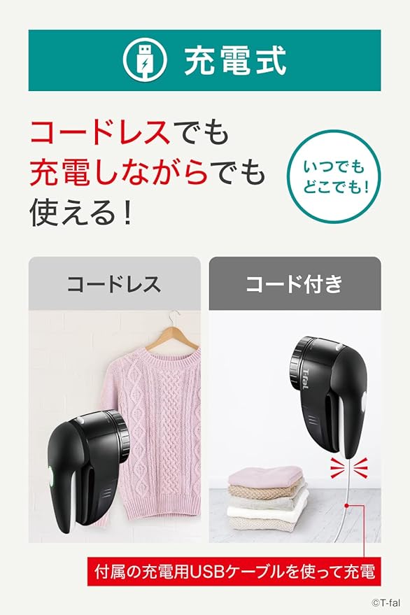 ティファール 毛玉取り器 充電式 コードレス/コード付き 「充電式毛玉クリーナー」 3枚刃 風合いガード 電動 ブラック JB7000J0